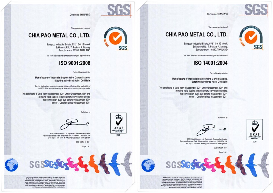 จำหน่ายตะปูม้วน เจียเป่า เมททัล สมุทรปราการ โรงงานผลิต ขายส่ง ลวดแม็ก ลวดเย็บ อุตสาหกรรม (Carton Stitching Wire / Industrial Staples: Fine wire, Fine / Medium, Heavy wire) ตรา LOCK Staples, DUO-FAST รองรับงานสำหรับโรงงานผลิตกล่องกระดาษลูกฟูก ประกอบด้วย ลวดเย็บกล่องกระดาษลูกฟูก (Carton Staples) ขนาด 1.70, 1.90, 2.20, 2.50, 2.70 MM ลูกแม็กซ์เย็บปิดกล่อง (Carton closing staples) ขนาด 3415, 3416, 3515, 3518 MM ลวดคาร์บอนต่ำ ชุบสังกะสี ชุบทองแดง (Galvanized wires / Copper plating wires) ขนาด 0.44, 0.60, 0.70, 0.80, 0.91 MM โรงงานผลิต ขายส่ง ตะปูม้วน (Coil Nails) ตรา Lion, Conical Coil Nails, Hi-load coil nails, Bulk nails ตะปูยิงไม้ สำหรับ ยิงพาเลทไม้ ยิงลังไม้งานแพ็กกิ้งหีบห่อ ล้อไม้ งานตกแต่งภายในเฟอร์นิเจอร์บิ้วอิน งานกรอบรูป เบาะโซฟา ไม้อัดคิ้วบัว คุณภาพดี ราคาถูก มีทุกขนาด ตั้งแต่ 1-1/2 นิ้ว-4 นิ้ว ตะปูแผงขาเดี่ยว Brad Nails ลูกแม็ก ยิงไม้ขาคู่ Staples สำหรับงานเฟอร์นิเจอร์และบิวท์อิน 1006, 1008, 1010, 1013, 1022, F-10, F-20, F-30, F-50 ตะปูม้วน สำหรับงานยิงไม้พาเลท ลังไม้แพ็คกิ้ง ล้อไม้ FC25V1, FC38V1, FC50V5, FS50V5, FS65V5, FC75W1, FC100W3 บริษัท เจียเป่า เมททัล จำกัด ก่อตั้งปี 2001 เลขทะเบียนนิติบุคคล 0115544002141 เราเป็นโรงงานผลิต ขายส่งทั่วประเทศและส่งออกต่างประเทศ ผลิตภัณฑ์ ตะปูม้วน ลูกแม็ก ตราสิงห์โต Lion, DUO-FAST รายใหญ่แห่งหนึ่งของประเทศไทย ผ่านการรับรองมาตรฐาน ISO 9001 and ISO14001 สนใจตะปูม้วน บริษัท เจียเป่า เมททัล จำกัด เบอร์โทรติดต่อ : 0-2709-6921-4, 08-1750-5742 ที่ตั้งโรงงาน : 852/1 นิคมอุตสาหกรรมบางปู ซอย 12 ตำบลแพรกษา อำเภอเมืองสมุทรปราการ สมุทรปราการ 10280