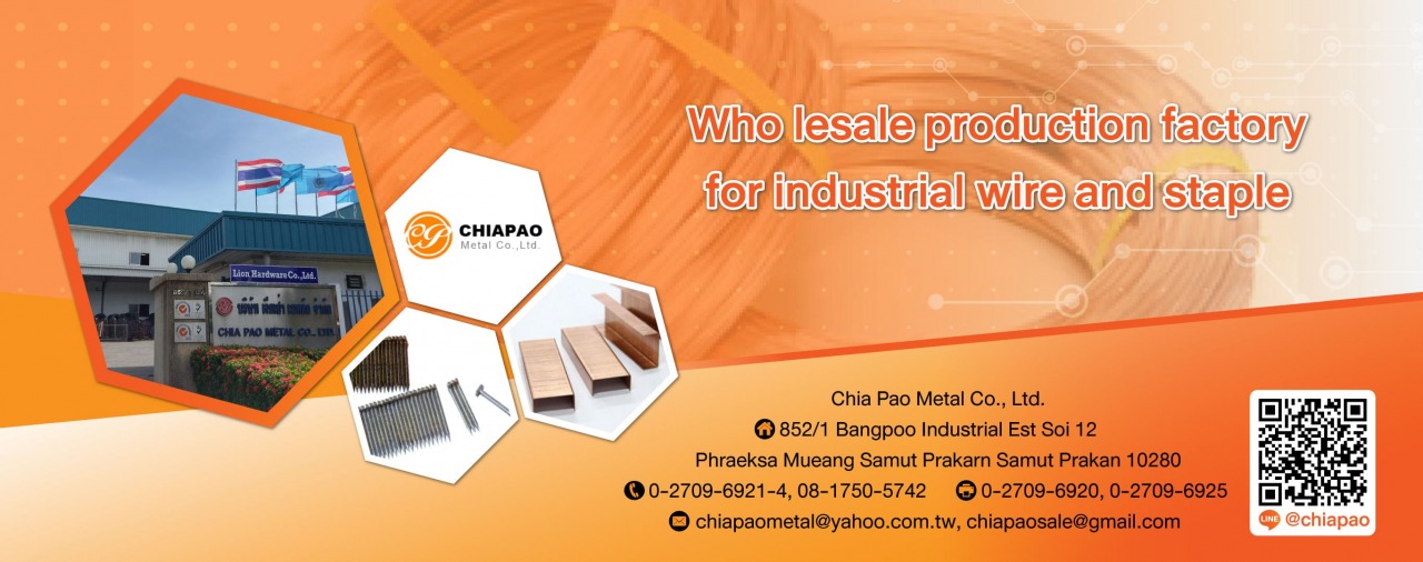 Jiabao Metal Co., Ltd. was established in 2001, company registration number 0115544002141 Manufacturing nails, staples, magnetic staples, Lion, DUO-FAST brand and accept one of the large OEM jobs in Thailand. Certified by ISO 9001 and ISO14001