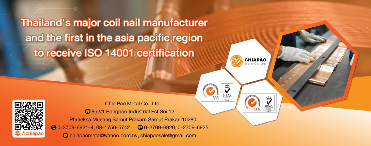 Factory for producing nails, rolling pin, staples, wholesale throughout the country and exporting abroad Jiabao Metal Co., Ltd. was established in 2001, company registration number 0115544002141 Manufacturing nails, staples, magnetic staples, Lion, DUO-FAST brand and accept one of the large OEM jobs in Thailand. Certified by ISO 9001 and ISO14001